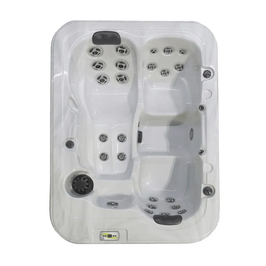 The GL525L seats up to three adults with one of those seats being a comfortable lounger. Equipped with 25 stainless steel adjustable hydrotherapy jets, you can relax to relieve stress and tension. This well-designed hot tub features two LED backlit laminar water features, LED lighting on interior and exterior, and air and water controls that provide the ultimate in luxury.