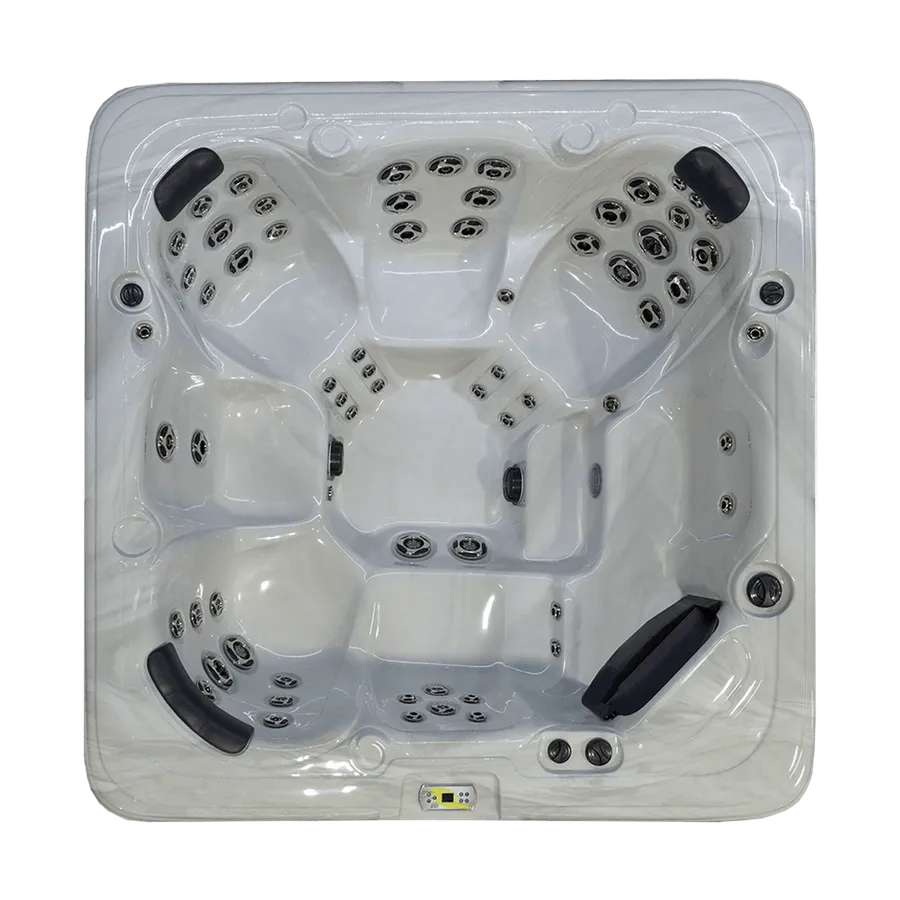 The GL863B offers an abundance of room for up to seven adults and features 63 stainless adjustable hydrotherapy jets to help you unwind and relax. The spacious footwell provides ultimate comfort, while the padded headrests make your hot tub experience even more luxurious.