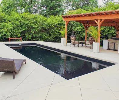 Volcanic Black is a true showcase color; light refracts off its surface to create an extreme shine that looks like a blanket of colorhttps://imaginepools.com/colors/#:~:text=volcanic%20black. Pools of Fun installs this contemporary finish for Indiana homeowners who want a dramatic, mirror-like pool that becomes the centerpiece of their outdoor space.