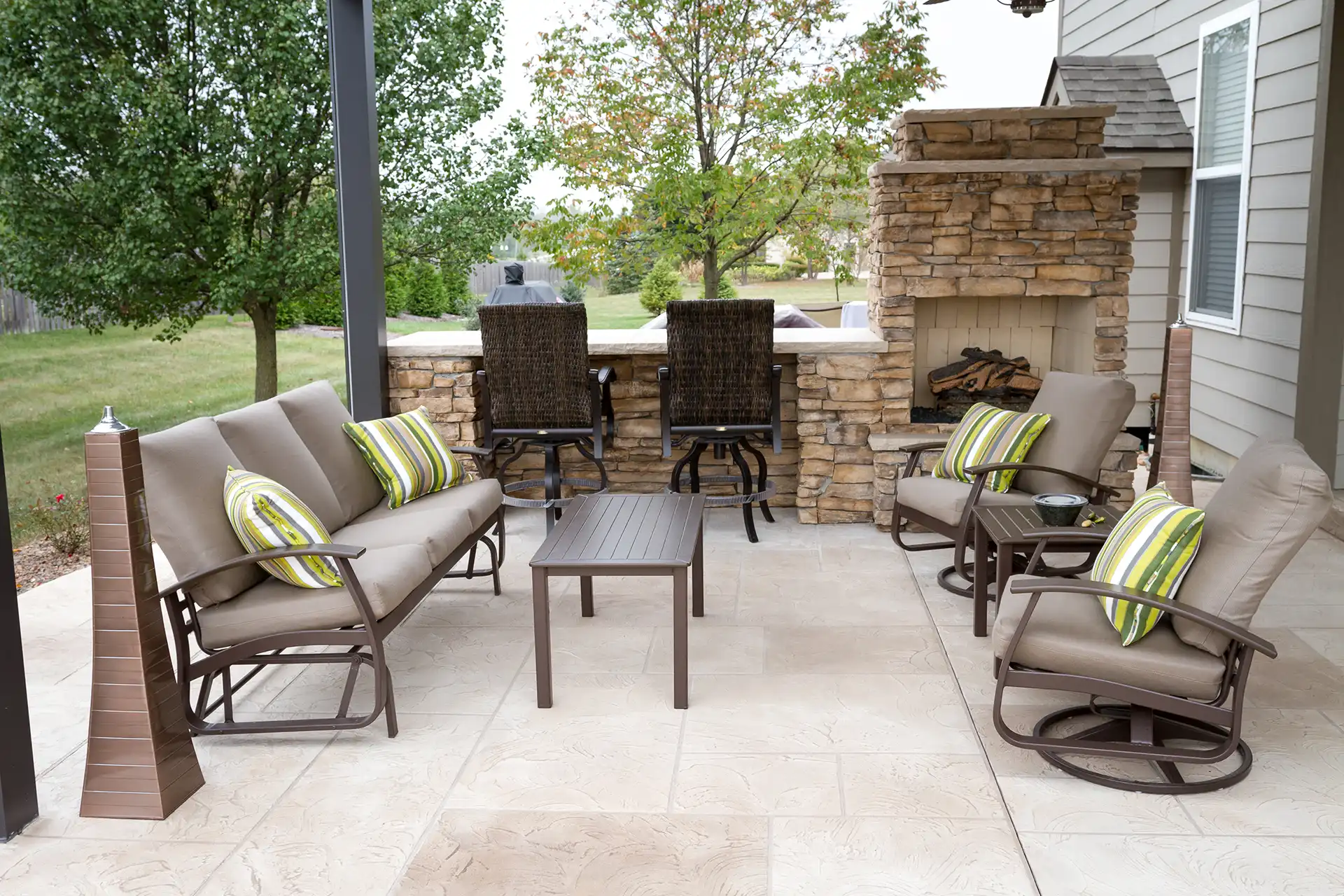 Pavers and natural stone require sealing every few years; composite decking needs little more than occasional cleaning. We’ll provide detailed care instructions for your chosen material.