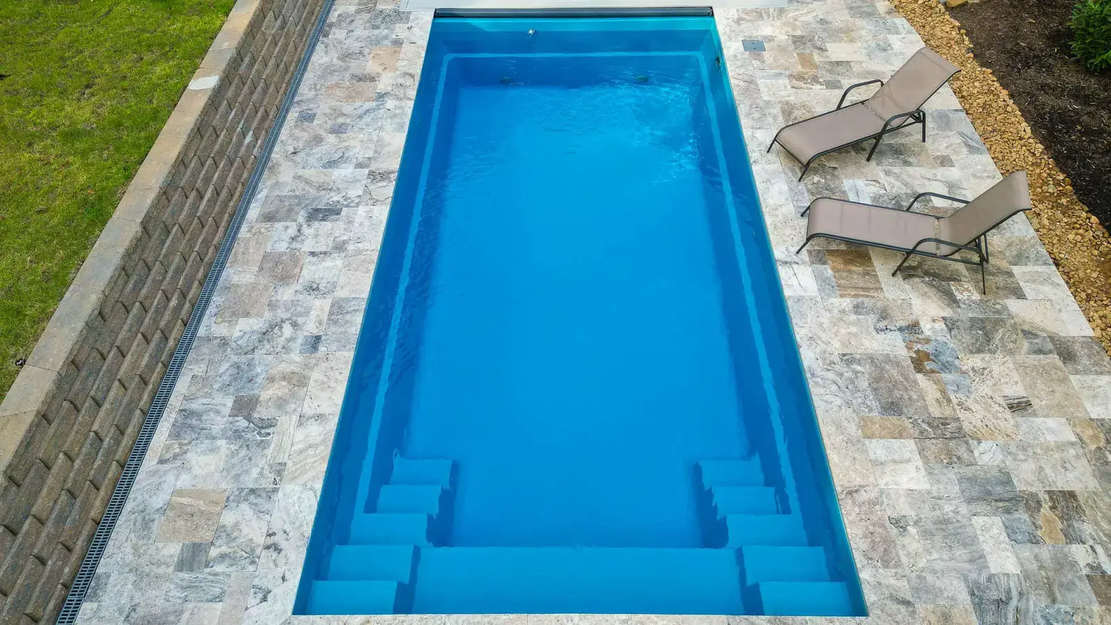 Perfect for active families and party hosts, The Freedom is a sleek rectangle pool designed around a flat‑bottom floor that encourages play and exercise. At the entry end you’ll find a spacious bench running the width of the pool; it can be plumbed with optional spa jets to create a relaxing hydrotherapy seat. Entry and exit steps are positioned on both sides so swimmers have easy access no matter where they are.