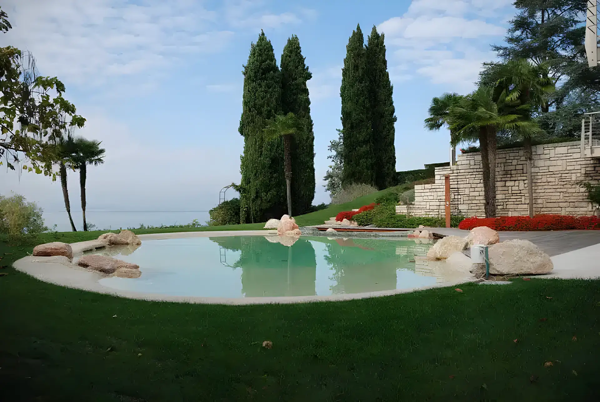 Incorporate a lagoon‑style, sand‑resin spa that blends with natural landscaping for a resort feel.