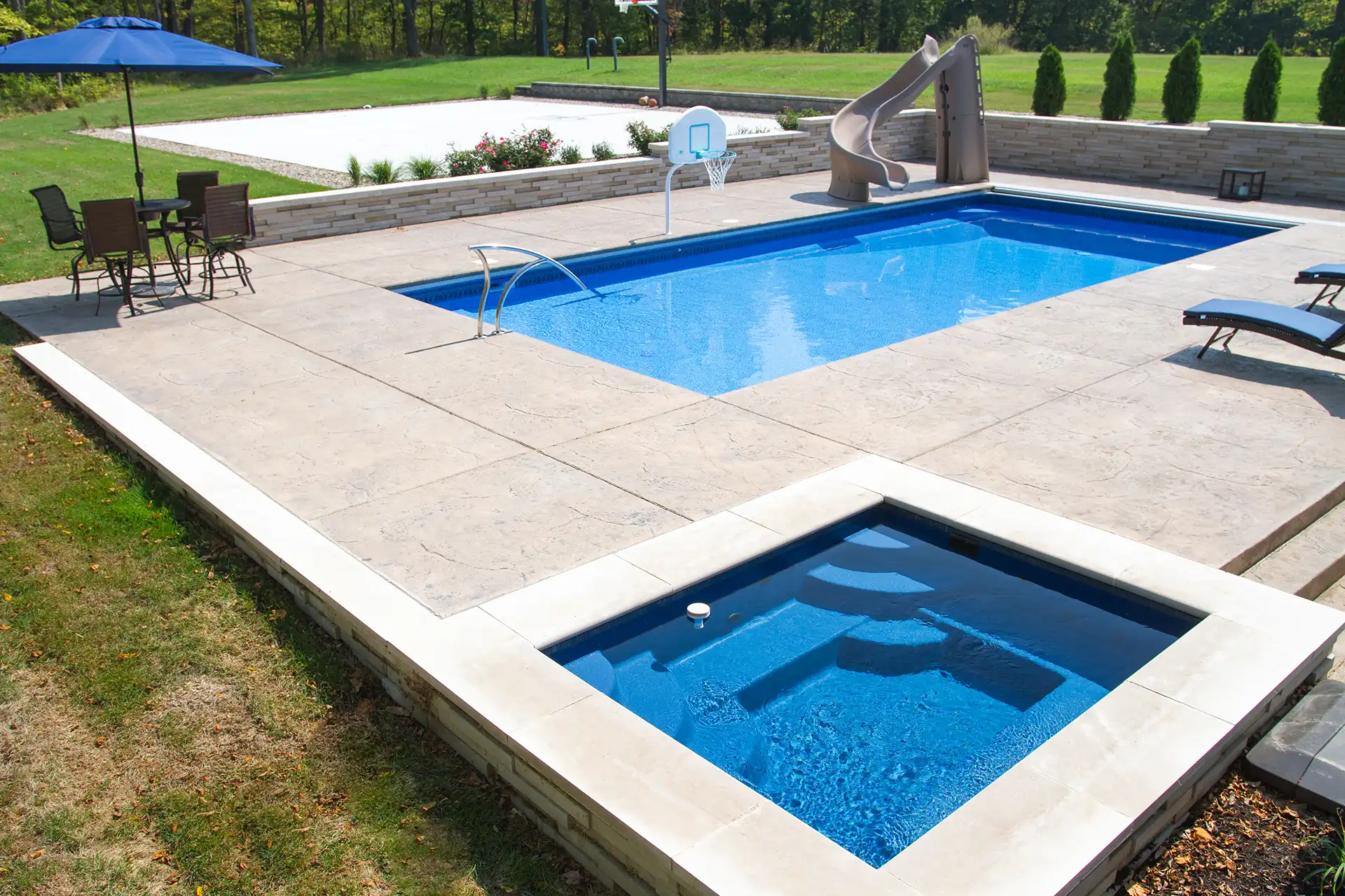 Yes. Depending on your pool’s construction, we can attach a new spa or install a standalone hot tub in proximity to the pool.